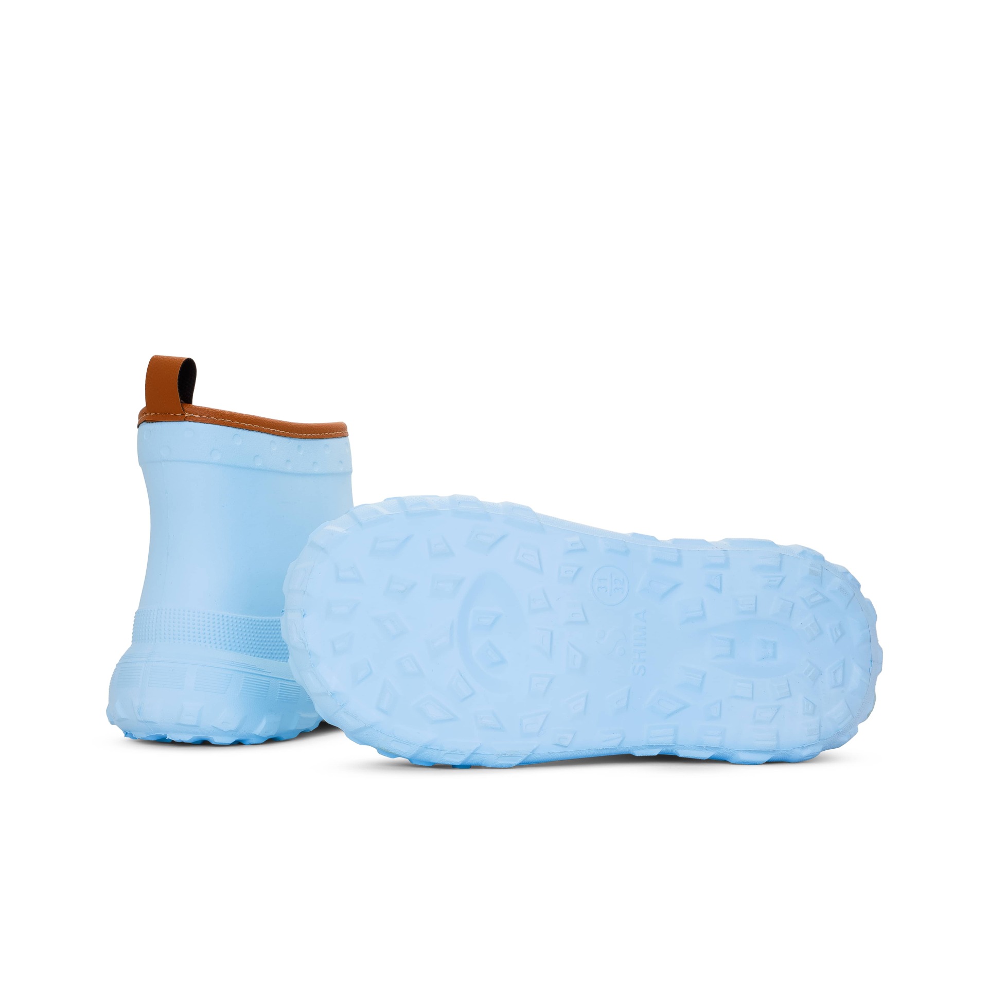 نیم بوت بچگانه شیما مدل کرومی آبی روشن حصول جدید شیما کفش طبق اصول و استاندارد های ترند روز با بهترین مواد اولیه eva با کیفیت درجه 1