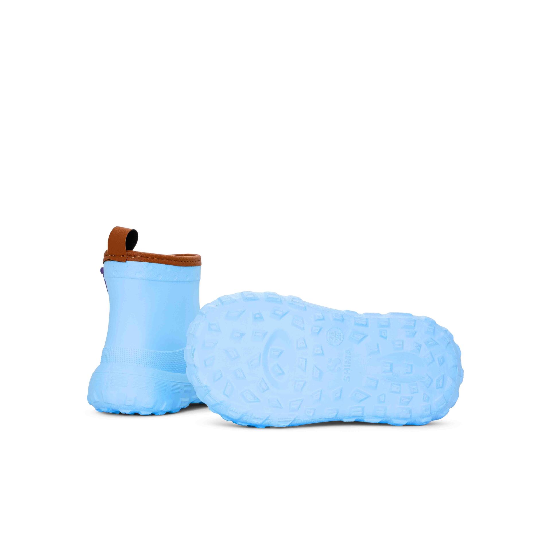 نیم بوت بچگانه شیما مدل کرومی آبی روشن حصول جدید شیما کفش طبق اصول و استاندارد های ترند روز با بهترین مواد اولیه eva با کیفیت درجه 1