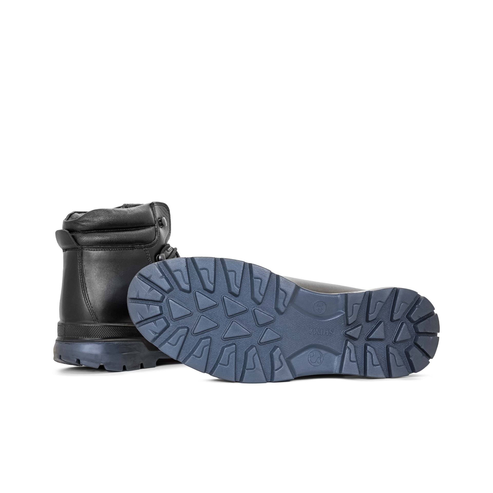 نیم بوت مردانه چرمی شیما مدل وینسون 703 مشکی دارای رویه چرم طبیعی، کفی راحتی ، مناسب استفاده های کاربردی روزمره طولانی مدت، برای انواع سنین و انواع کاربرد ها ، قیمت استثنایی ، دارای 6 ماه گارانتی زیره