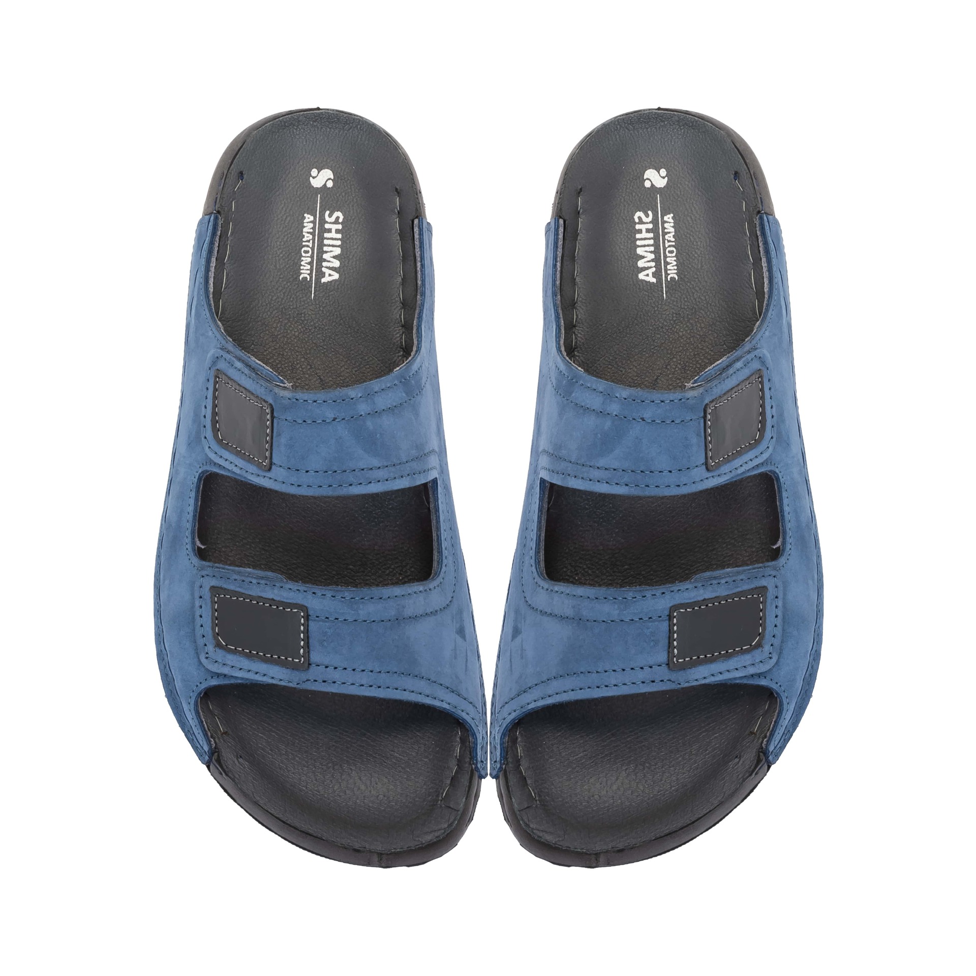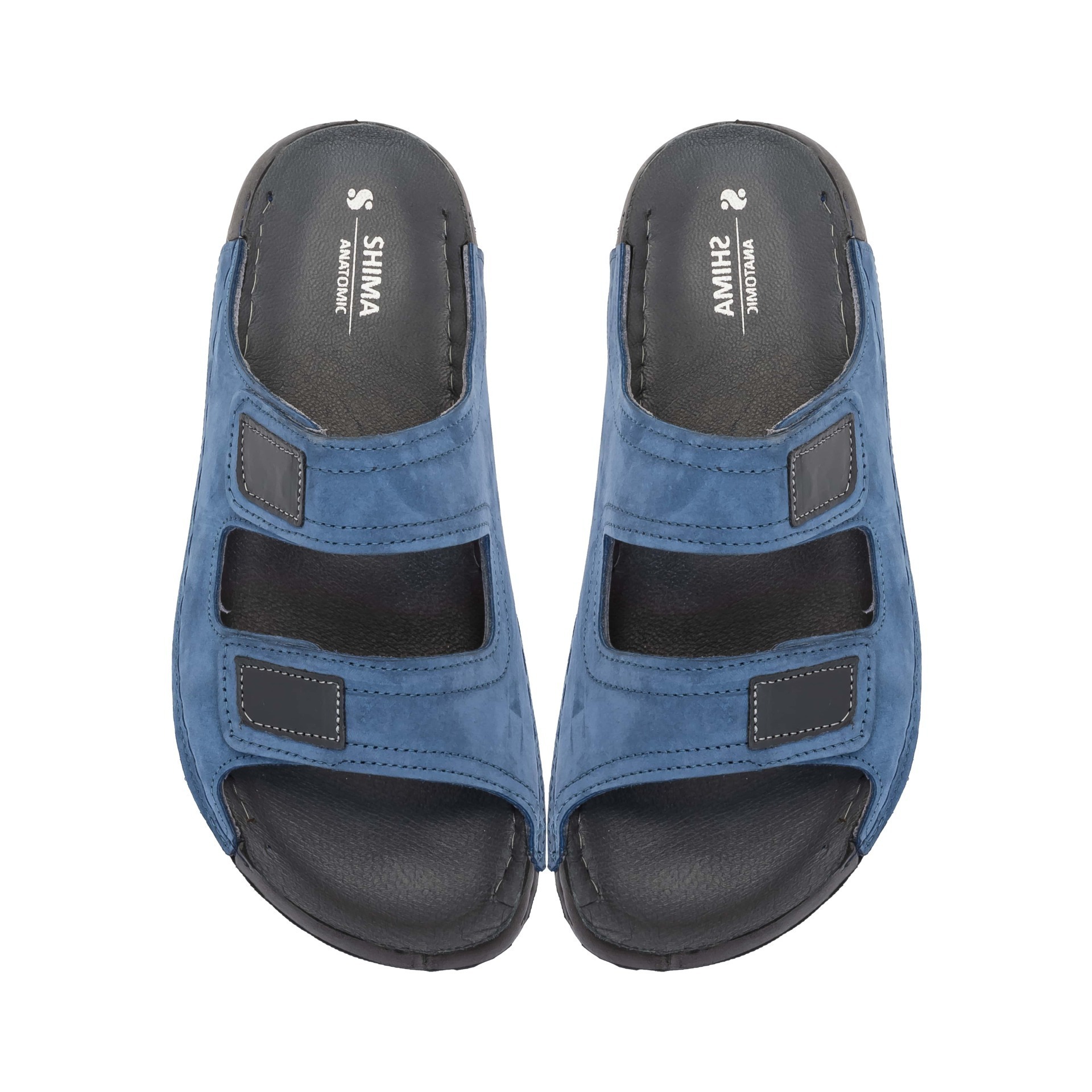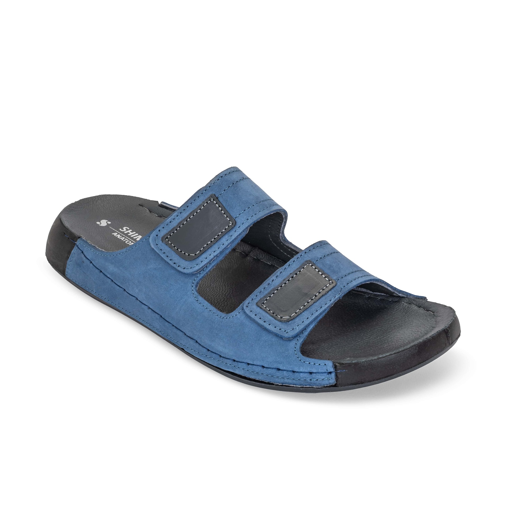 دمپایی مردانه چرمی شیما مدل فورد آبی نفتی