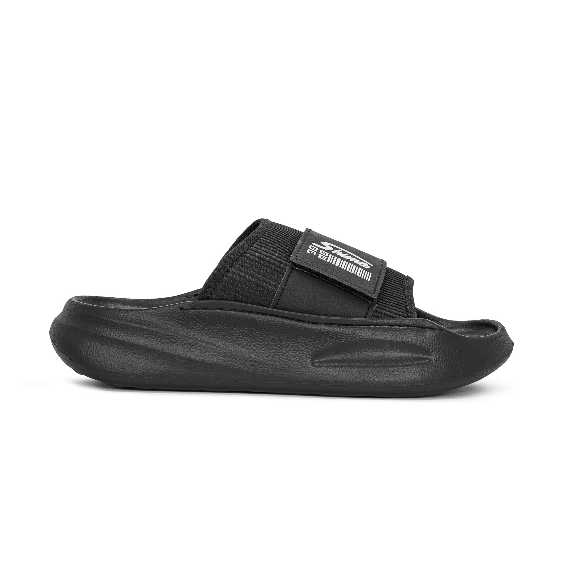 دمپایی مردانه شیما مدل لئون مشکی محصول جدید شیما کفش طبق اصول و استاندارد های ترند روز با بهترین مواد اولیه eva با کیفیت درجه