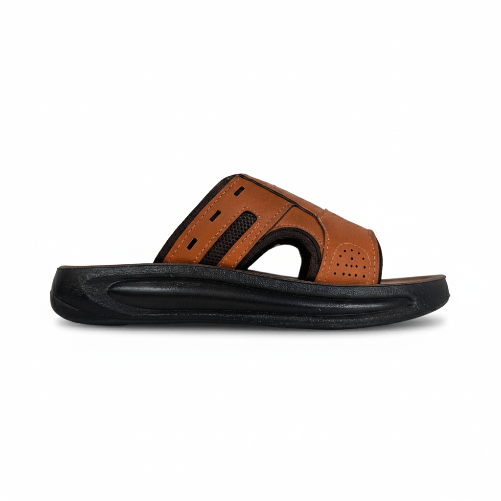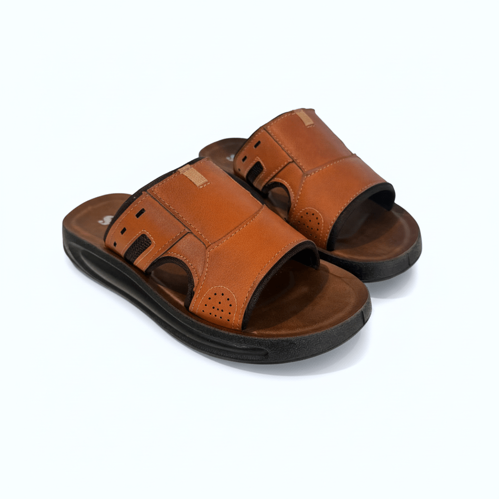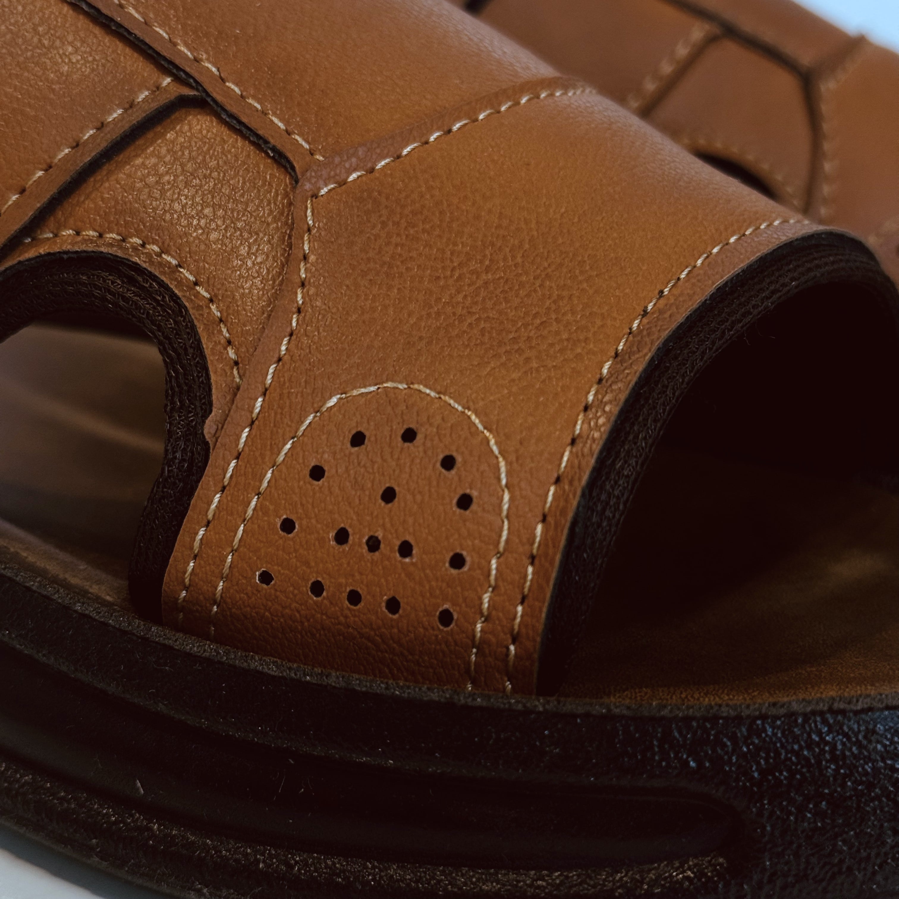 رویه این دمپایی از چرم مصنوعی با کیفیت تهیه شده است. سبک و بسیار راحت می باشد. مناسب برای بیرون و داخل خانه میباشد.
